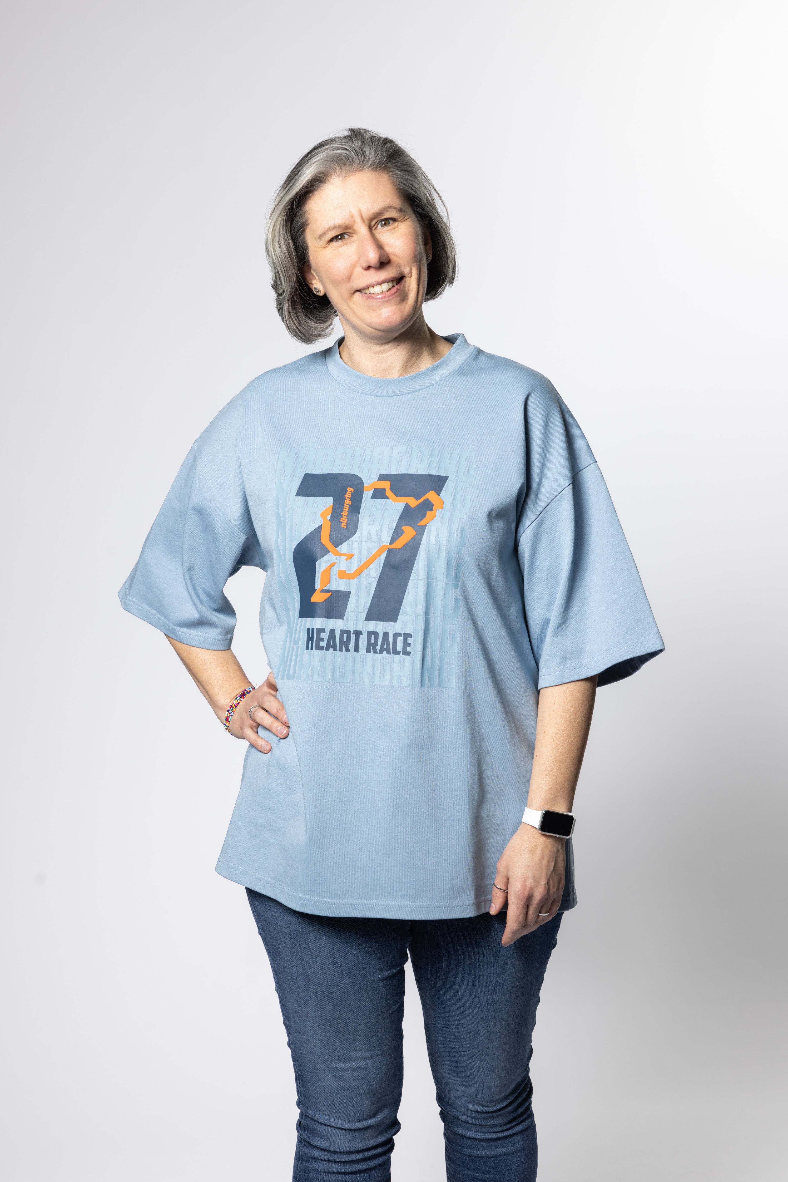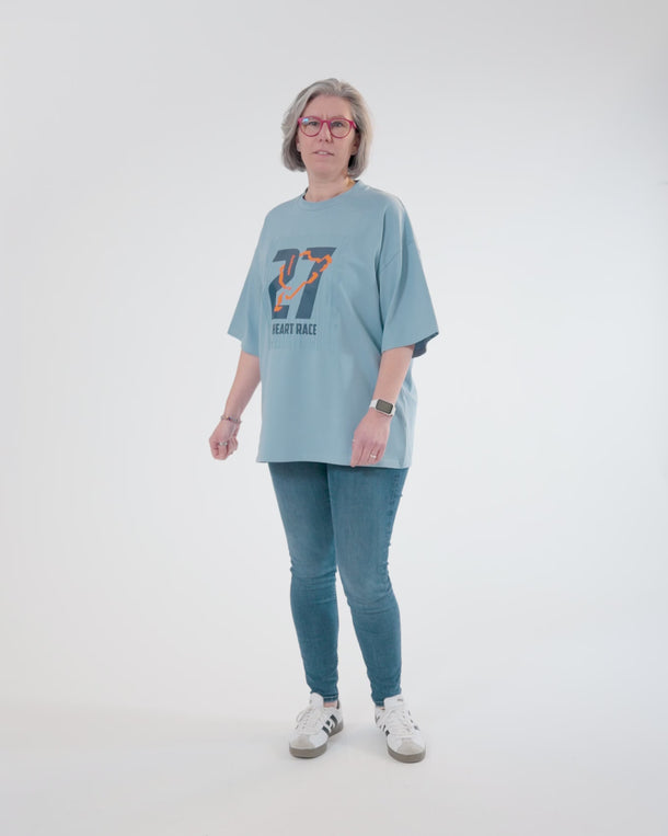 - Design: großer Frontprint mit "27 - HeartRace" und Rennstrecke