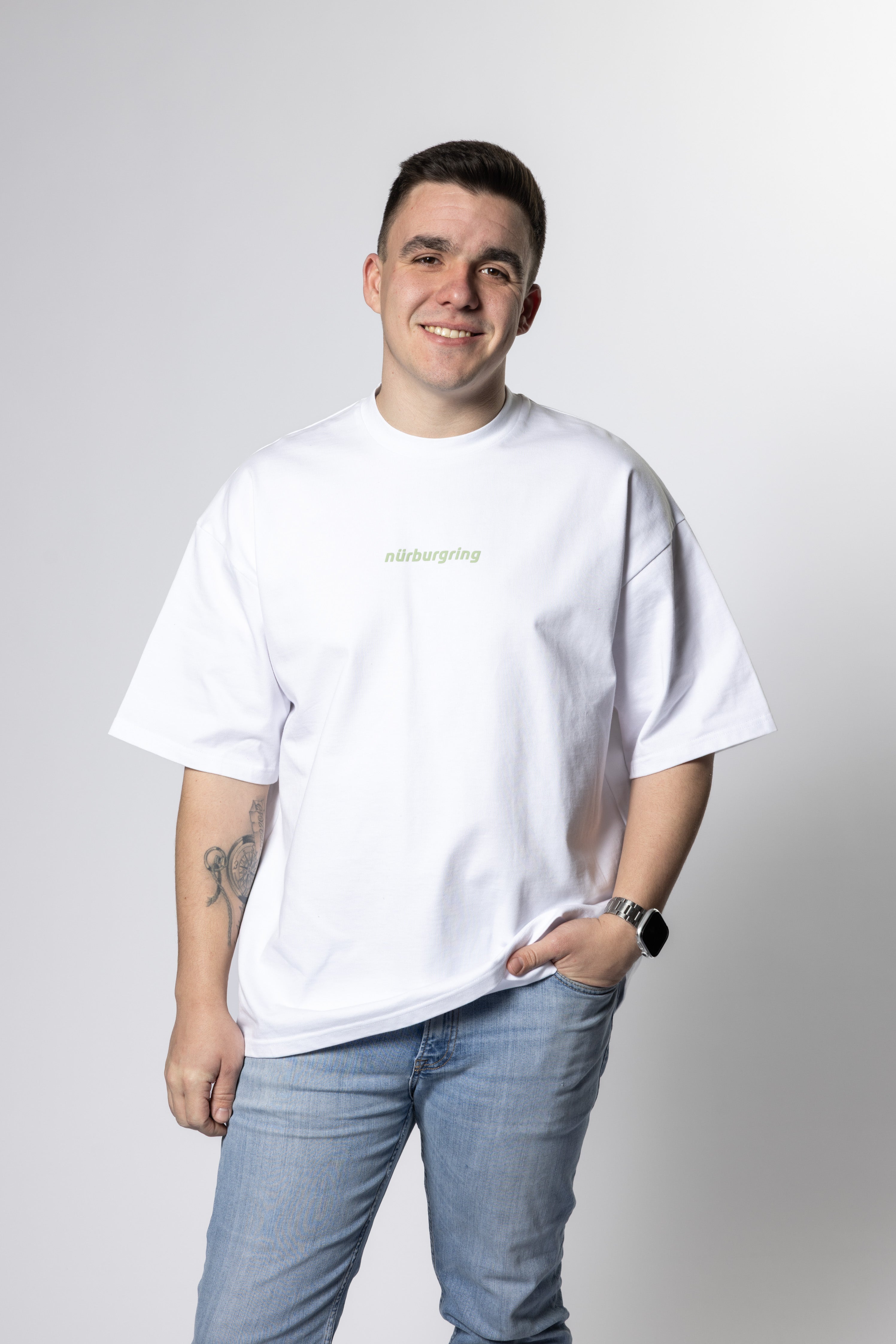 - Design: Großflächiger Rückenprint mit Nürburgring Schriftzug und Streckensilhouette, dezentes Detail auf der Brust