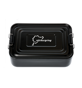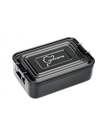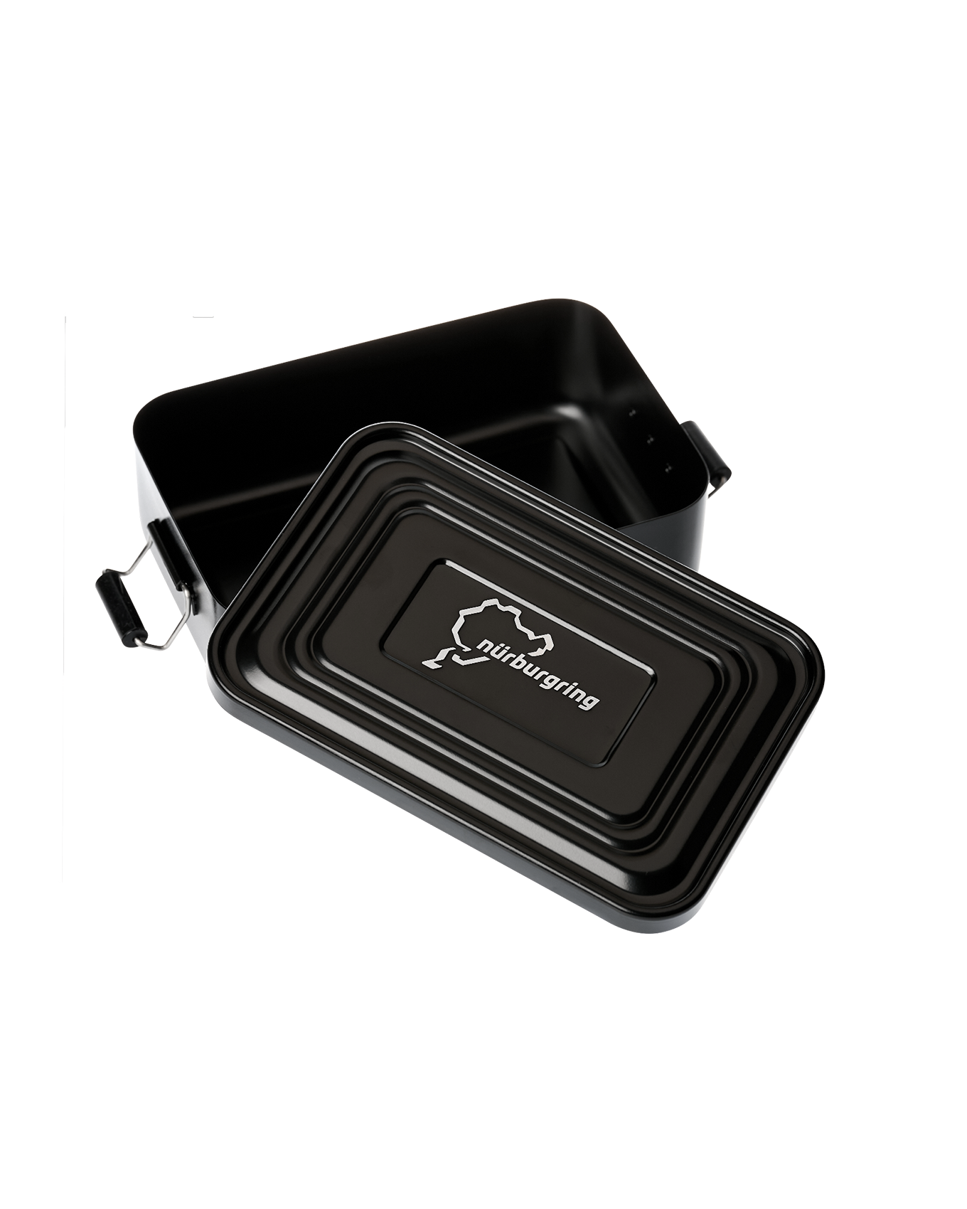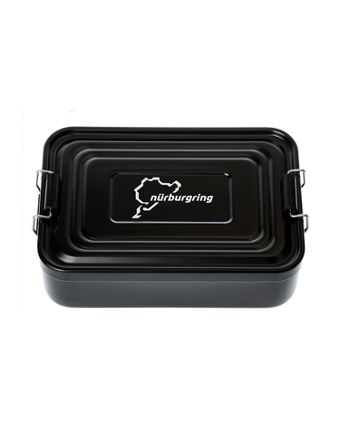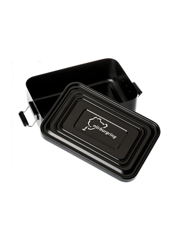 The "Logo" lunch box combines functionality with a touch of racing flair. Made of black anodized aluminum, it's not only sturdy and durable, but also a stylish accessory for your lunch break. The white Nürburgring logo on the lid showcases your affiliation with the world of motorsport. Please note that the lunch box is not dishwasher-safe and should be cleaned by hand.
