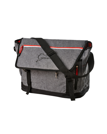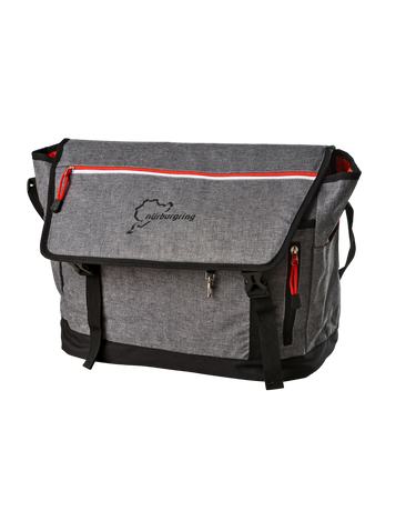 The "Starting Grid" messenger bag combines functionality with a sporty look that reflects the dynamic atmosphere of the Nürburgring. The robust fabric and cleverly designed compartments make it an ideal everyday companion. With the striking Nürburgring silhouette on the front flap, the bag showcases your passion for motorsport. The bag offers ample space for all your essentials, whether for work, university, or a day trip.