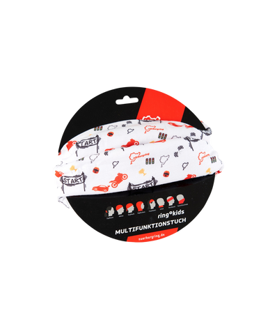 The Ring°Kids multifunctional scarf with fleece is the perfect accessory for young motorsport fans. It not only offers protection from the cold with its cozy fleece, but also adds a fun touch to any wardrobe with its dynamic racing design. Ideal for everyday wear, sporting activities, or as stylish protection during cooler events at the Nürburgring.