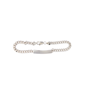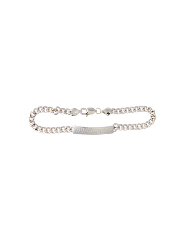Simple bracelet with an engraved front plate and a sturdy link chain. The lettering on the front subtly references the Nürburgring.