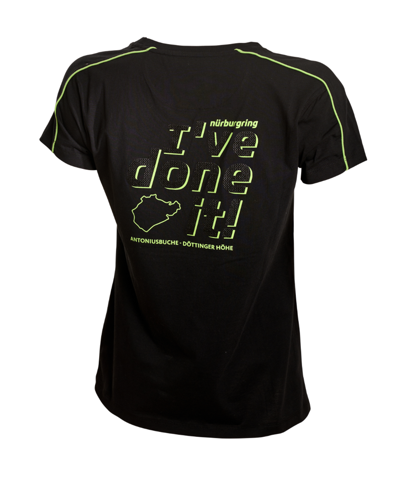 The "I've Done It" women's T-shirt combines fashionable design with comfort. It's made from 100% organic cotton, ensuring a particularly pleasant feel against the skin. The stylish print on the front and the dynamic carbon look on the back make this shirt a real eye-catcher. Whether as a memento of an impressive lap time or as part of your everyday outfit, this special T-shirt stylishly showcases your enthusiasm for the Nürburgring.