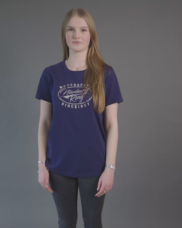 The women's "Racing" T-shirt expresses your enthusiasm for the Nürburgring. The large print on the front with the Nürburgring lettering makes this shirt a real highlight.