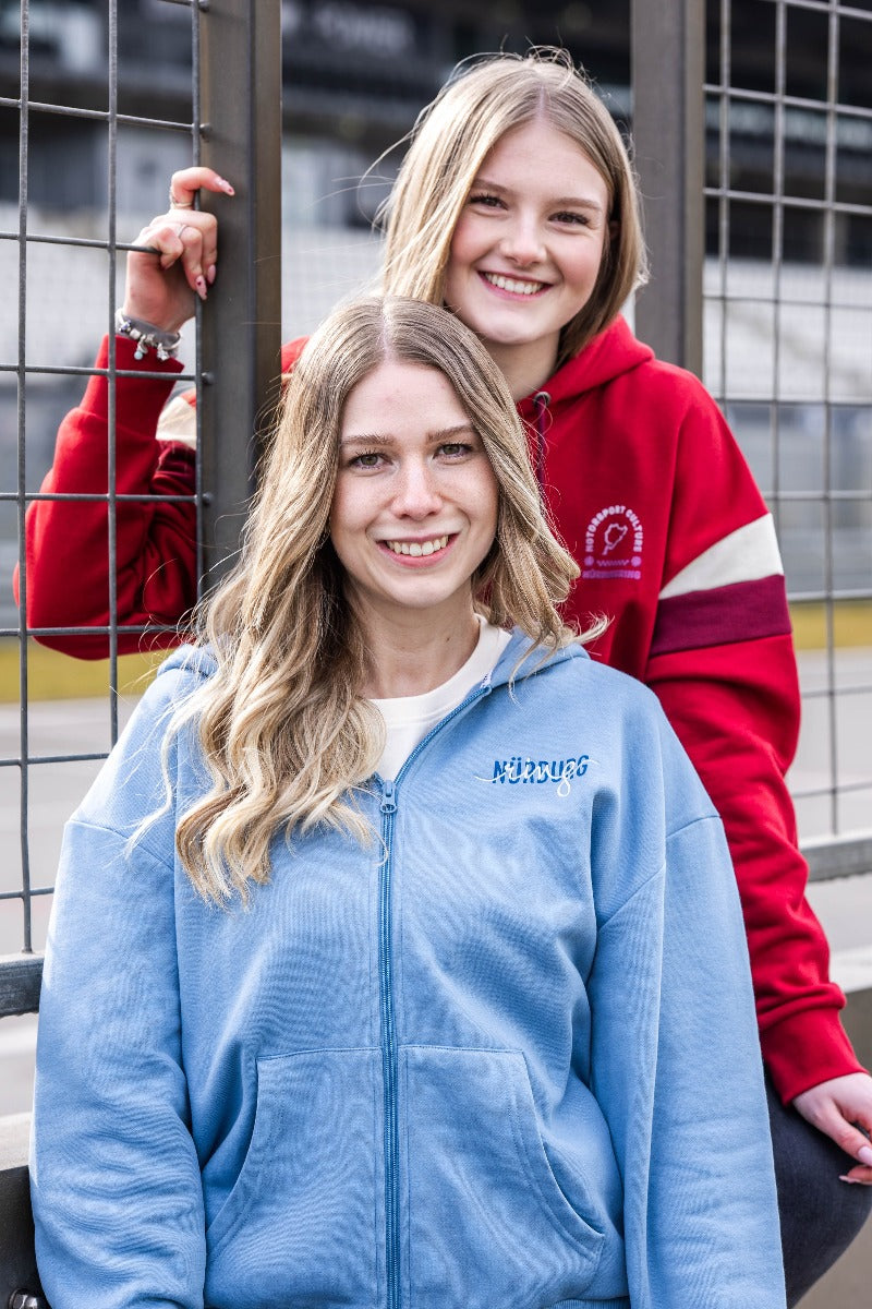 Sporty, modern, and full of Nürburgring spirit – the "Famous" women's zip hoodie captures your passion. The Nürburgring lettering on the chest makes a bold statement, while the high-quality material ensures comfortable wear.