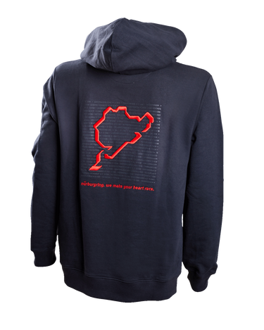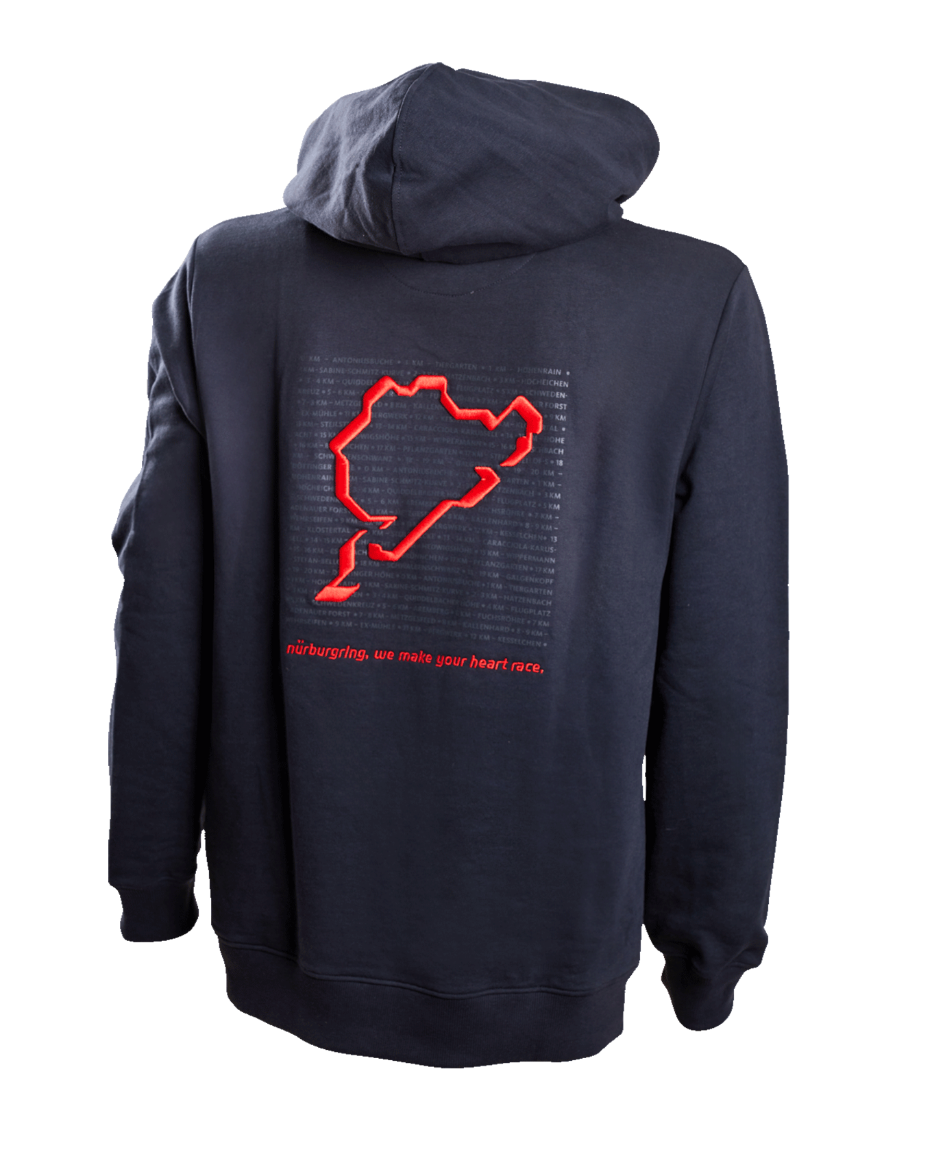 Experience style and comfort with our "TRUST" hoodie. In bold blue with a striking red logo embroidery on the chest and back, this hoodie is a statement of affinity with the legendary race track. Made from 80% organic cotton and 20% polyester, it offers maximum comfort and the opportunity to show off your passion for the Nürburgring in style.