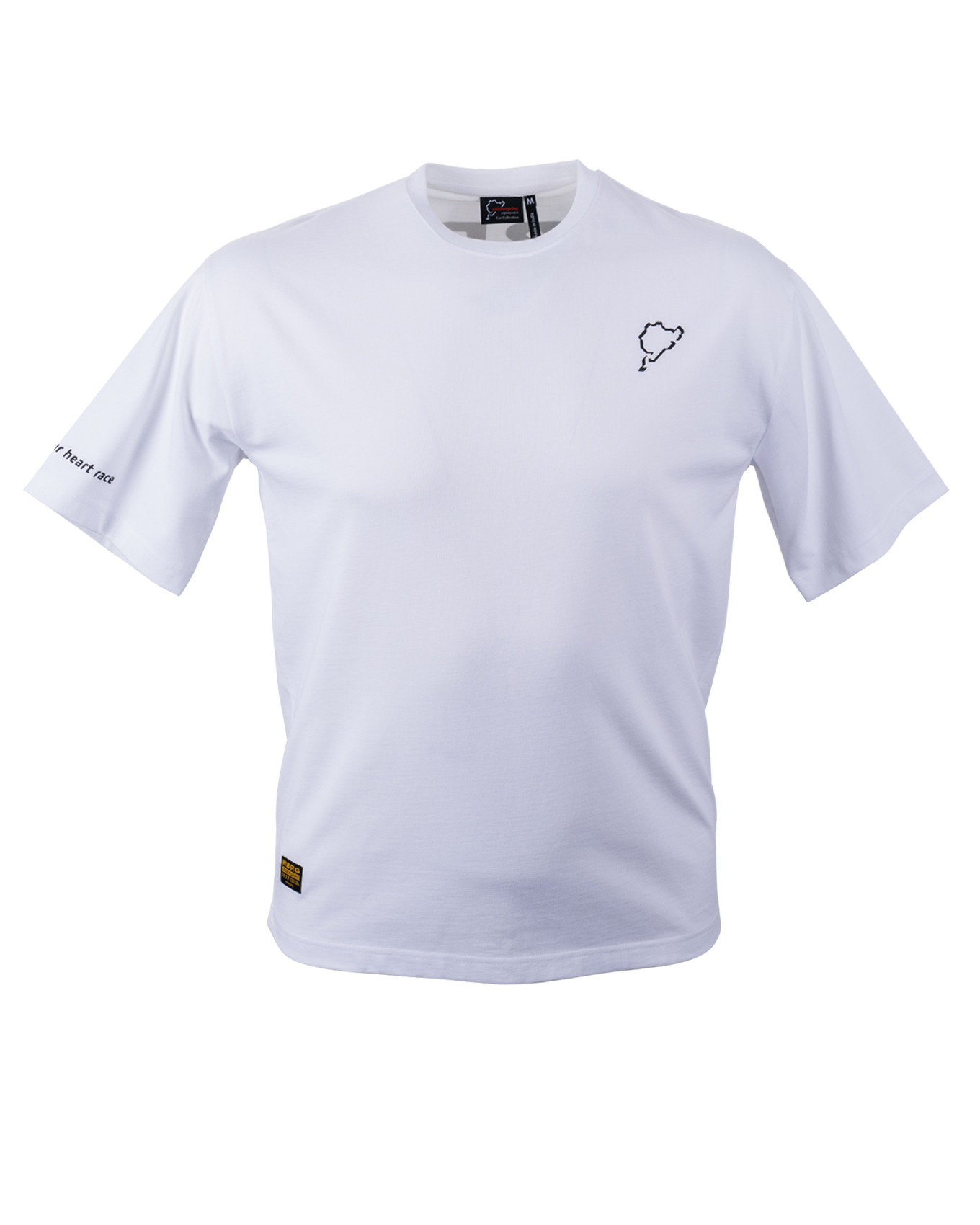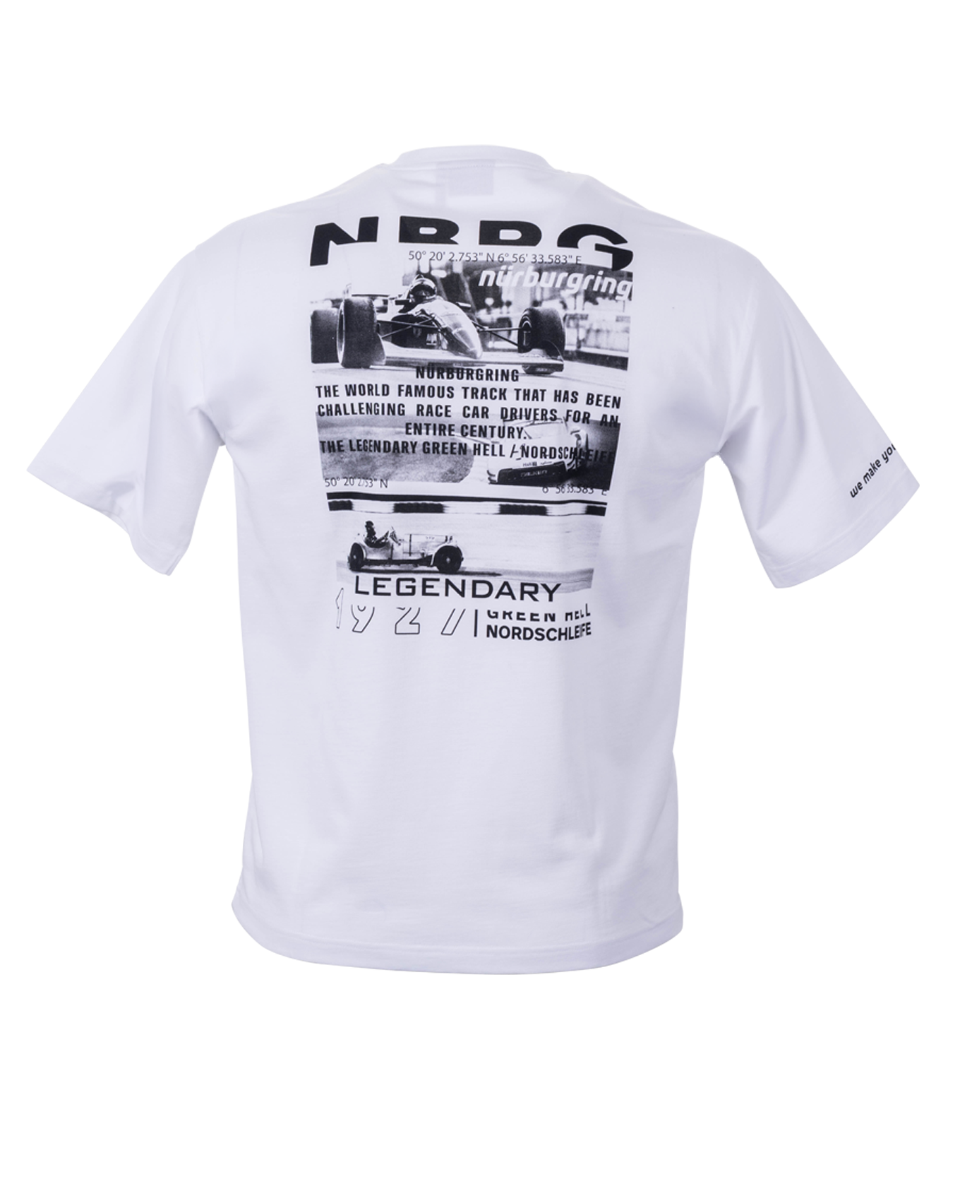 Dieses Herren T-Shirt bringt die Faszination Motorsport direkt auf den Punkt. Der große Rückenprint mit den besonderen Motiven der Rennstrecke und markanten Schriftzügen ist eine klare Hommage an die Nordschleife und ihre einzigartige Geschichte. Ein echtes Statement-Piece für alle, die den Rennsport lieben.