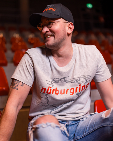 The striking design of this T-shirt combines the tradition and style of the legendary race track. The black Nürburgring print on a gray background with red lettering immediately draws attention and gives the shirt a classic yet dynamic look.