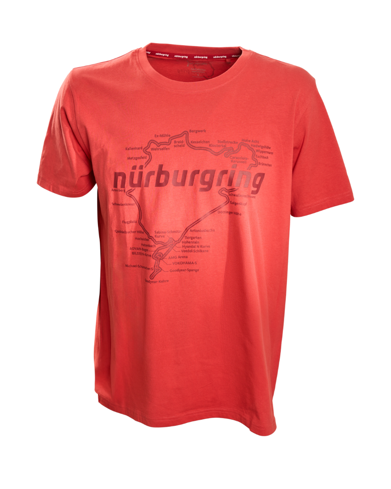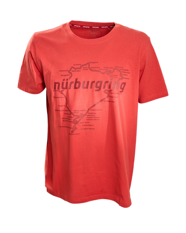 The striking track data print on the front on a red background with tone-on-tone print makes this T-shirt a must-have for all racing enthusiasts.