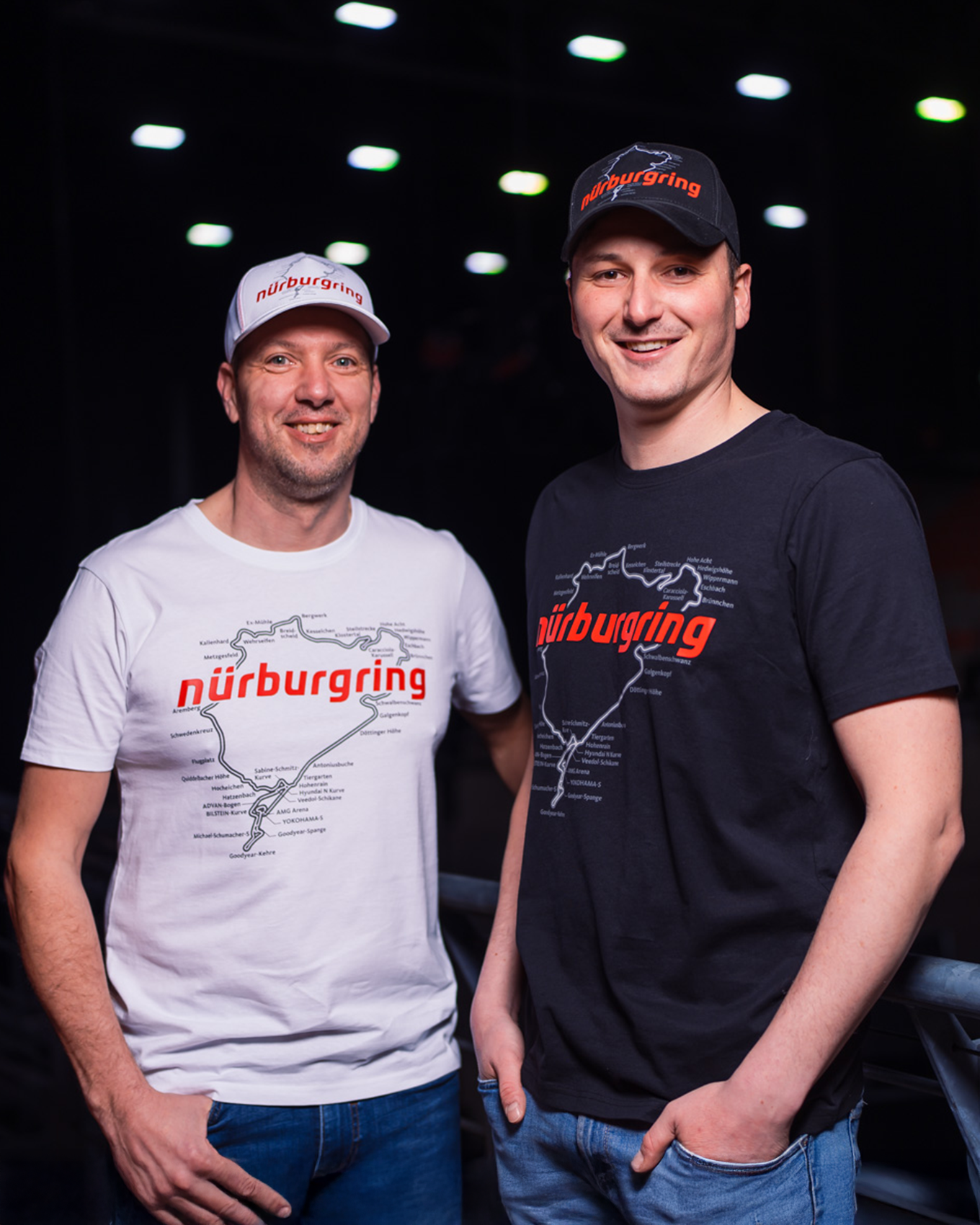 - T-Shirt Color: White with black Nürburgring print and red Nürburgring lettering