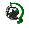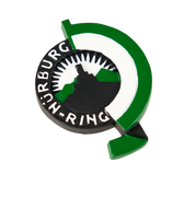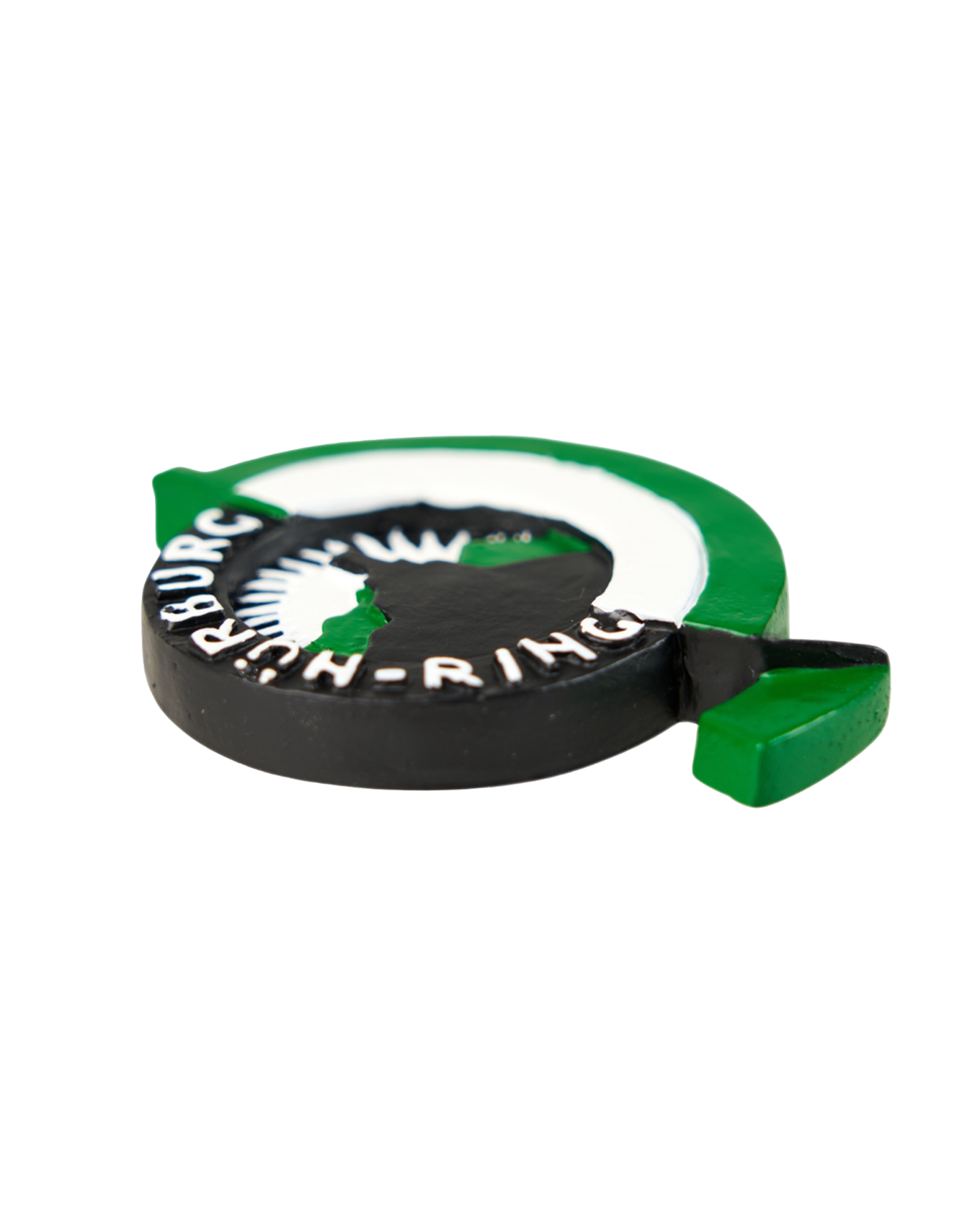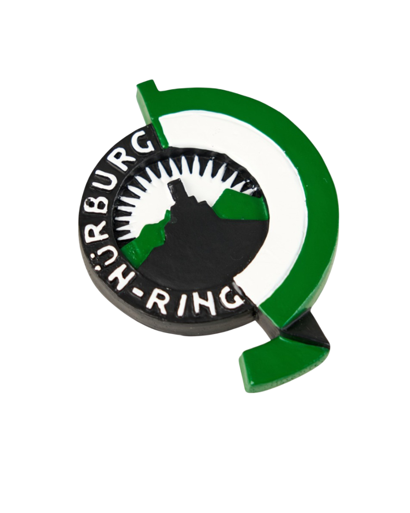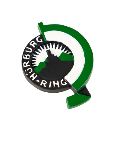 Three-dimensional magnet of the historic Nürburgring logo.