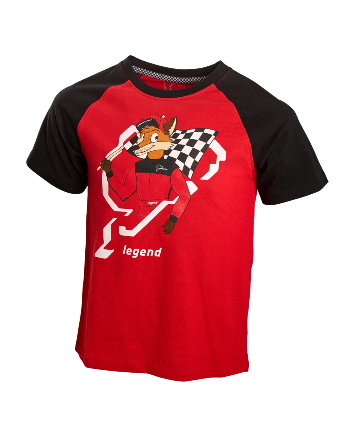 The ring°kids "Legend" T-shirt is made from high-quality organic cotton and proudly features our mascot Legend on the front. In striking red with black sleeves, this T-shirt is not only stylish but also a must-have for every ring°kids fan.